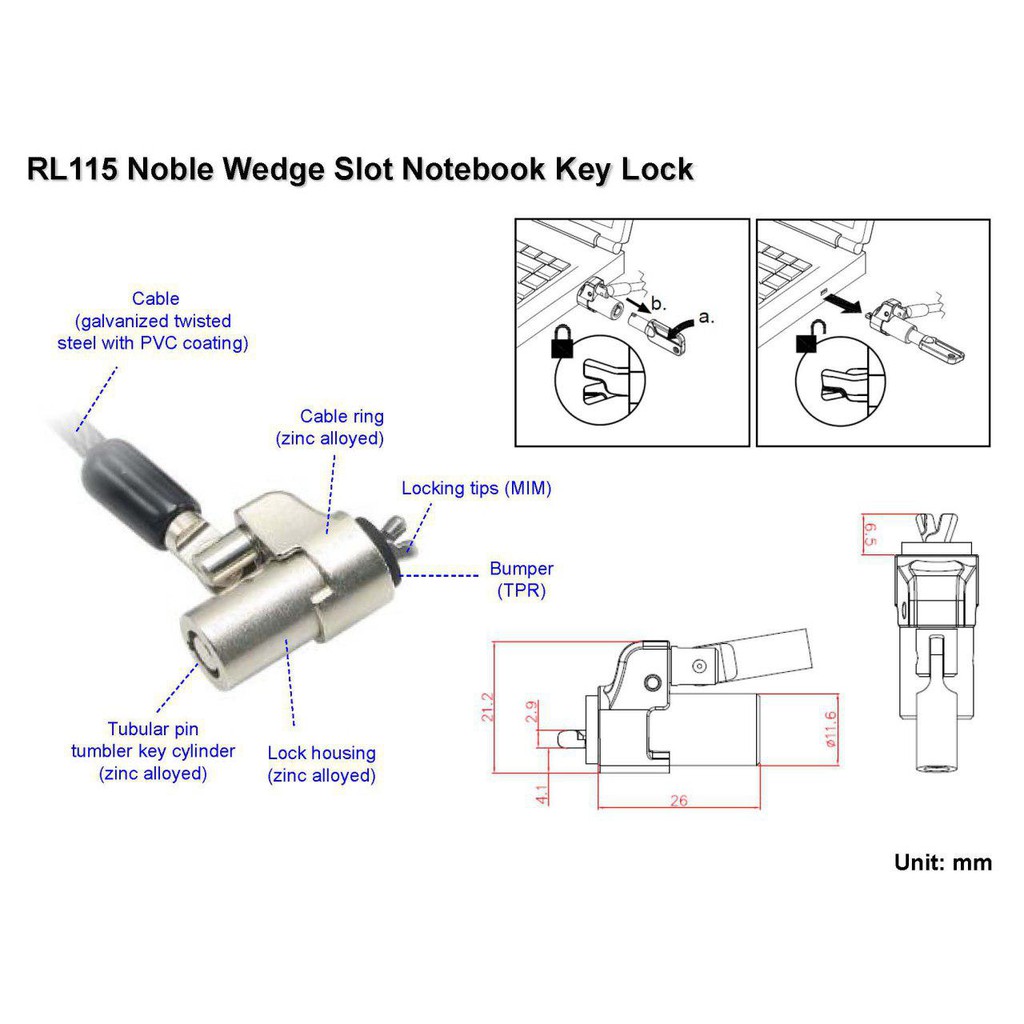 Noble wedge lock slot size. The noble locks tz08t low profile wedge lock is a great security solution for your dell laptop. It also called noble lock. Master key (optional) $5 each.